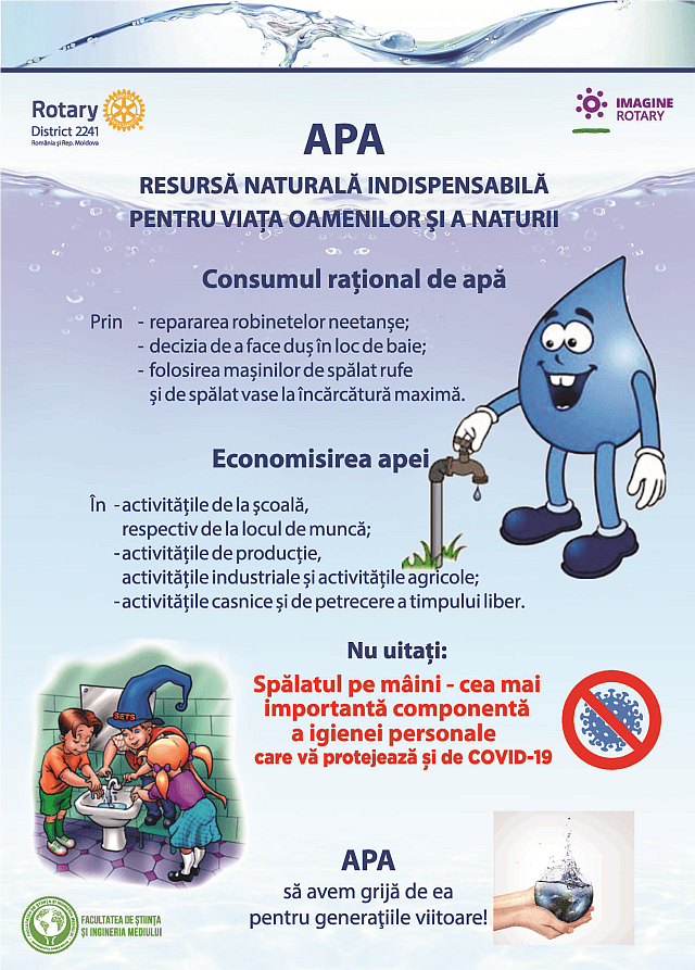 Educația pentru apa, protecția mediului și igiena persoanelor sunt componente importante ale viețîi zilnice, precum și teme majore în Rotary.